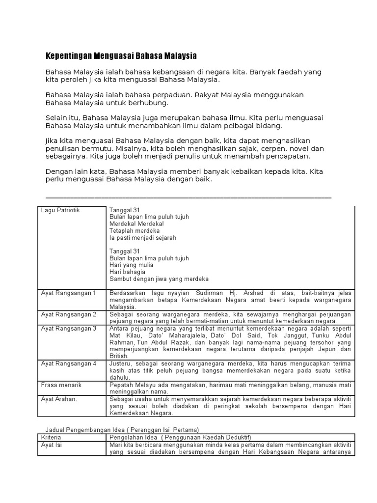 Contoh Karangan Kepentingan Menguasai Bahasa Melayu